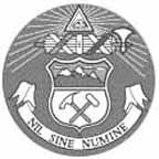 Shield with mountains and crossed pick and shovel. Sunrays originate from all-knowing "Eye of God" above fasces. State motto of Nil Sine Numine ("Nothing without Providence") on ribbon below shield.