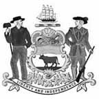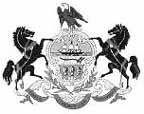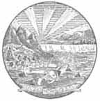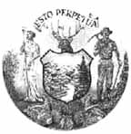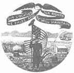 This is the most heavily imitated of all state seals on railroad stocks and bonds by far. The most common vignettes you will see on Pennsylvania certificates resemble the above design which is the official "coat of arms" of the State of Pennsylvania. Officially, both horses are black. The majority seen on railroad certificates show black and white horses. The official "state seal" has no horses and is unknown of railroad or coal certificates.