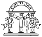 Georgia's state seal is a sparse design that has been particularly useful as a logo design. The design consists of three pillars supporting an arch with a military man holding a sword inside. Woven into the design are the words "Constitution," "Justice," "Wisdom" and "Moderation."