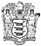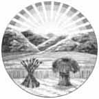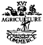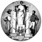 A plow surrounded by the words "Agriculture" and "XVI" (for 16th state) at top and a ship with sails down with the word "Commerce" below.