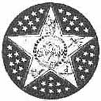 Large central star heavily ornamented with 45 smaller stars and goods representing the five Indian nations (Cherokee, Chickasaw, Creek, Choctaw, and Seminole.) Labor omnia vincit ("Labor conquers all things") in center.