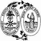 The most commonly seen "seal" seems to represent a combination of the obverse and the reverse designs of the 4-inch physical state seal. The left elliptical frame shows a palmetto tree surrounded by "South Carolina, animas opibusque parati" (