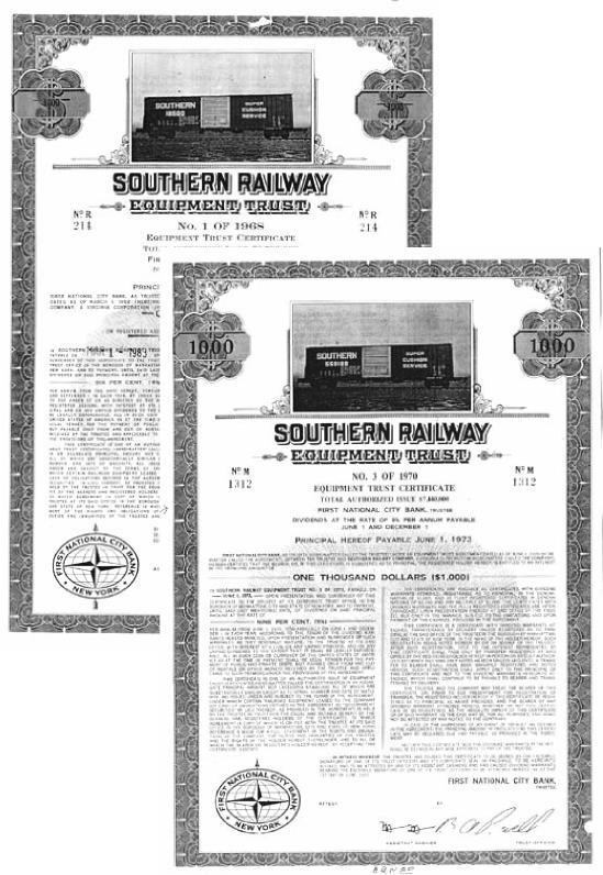 Look carefully at most equipment trusts and you will see that they are labeled with railroad names without the word “company.” This is because the equipment is not actually owned by the railroad, but by the trust. The trust, in turn, is commonly administered by a large New York-based bank or trust institution. It is always a little hard to decipher the exact intent, but in general, equipment trust certificates represent ownership of equipment that is leased to specific railroads.