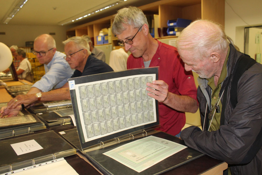 Auctioneer and participants at the Mario Boone (Centrum voor Scripophilie) auction and bourse held in Antwerp, Belgium, October, 2021