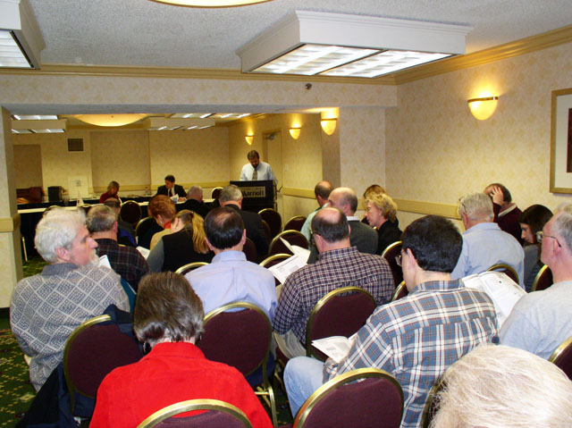 Dealers and collectors at auction conducted by Scott Winslow & Associates in conjunction with the Bob Schell Stock Certificate and Bond Show, Herndon, Virginia, January, 2005