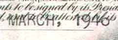 Oftentimes, the printed portions of dates signal more significant changes elsewhere in certificate designs; printed dates simply serve as the easiest ways to discriminate between some varieties. The handwritten, typed, or rubber-stamped portions of dates are enclosed in parentheses as shown in the illustration below.