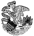 Eagle with shield holds ribbon in beak that reads "State sovereignty, National union." Rising sun beyond. Dates of territory and statehood status on rock. Unlike most states, the official Illinois seal has changed substantially since territorial times. The current seal from 1868 is the only one to show the sun.