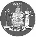 The strong allegorical designs and the heavy number of incorporations in New York have made this seal the second most imitated on U.S. railroad stocks and bonds. Liberty with staff and Liberty cap stands at left. Justice with scales stands at right. On the shield between is a view of ships on the Hudson River and the Hudson Highlands beyond. Eagle and globe above shield. Excelsior ("Higher") below shield.
