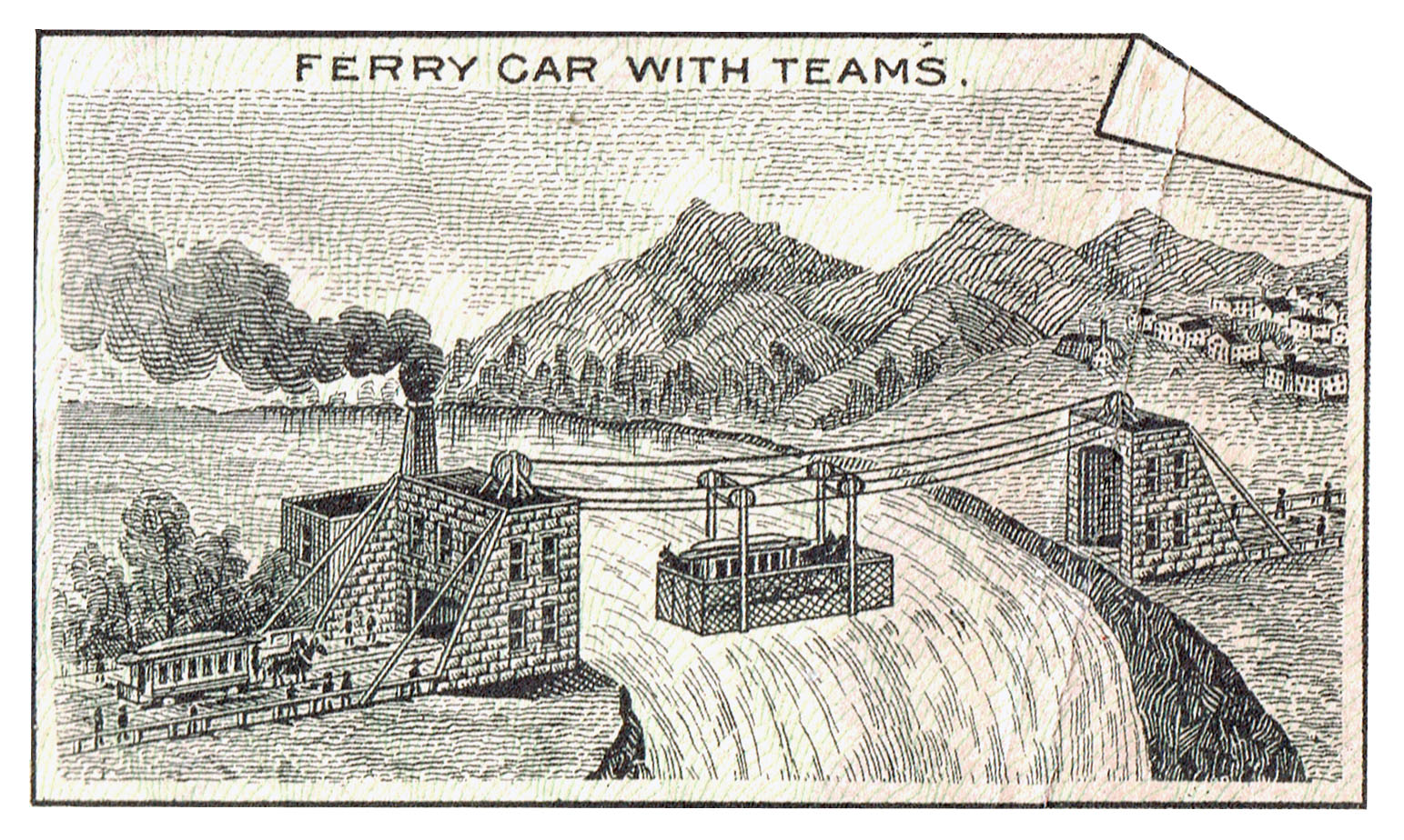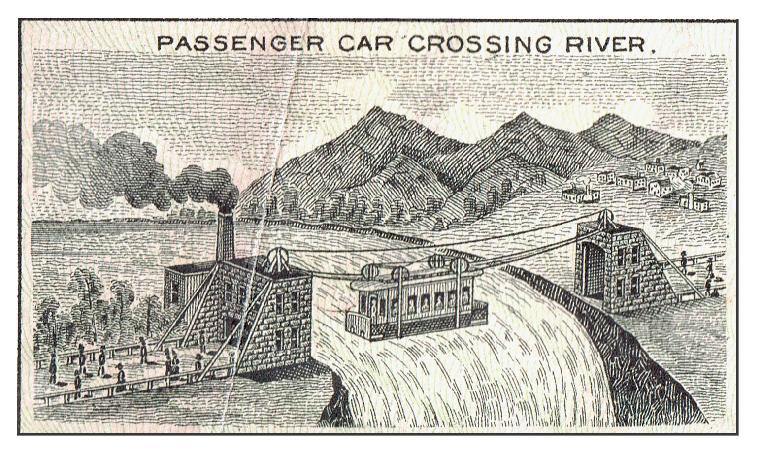 Two lithograph vignettes by the Meyercord Co. These appear on certificates of the Chicago-based Gagnier-Griffin Suspended Railway Bridge Company, Incorporated. A more elaborate depiction of the left image appears in the June 16, 1894 issue of American Engineer & Railroad Journal (v68, pp 282-283.) In 1894, one of the company's bridges was used by the Unakaa Park Company to cross the Tennessee River at Knoxville, from the terminus of the West End Railway across a span of 1,060 feet. The description in the Journal does not say whether the bridge actually carried any railway cars or not. No other references are known that indicate whether the company installed any of its bridges elsewhere. This company is catalogued because it clearly carries indication of its 'railway' purpose in is name.
