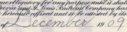 It is not unusual for railroad companies to have issued several different printings of stock certificates with what initially appears to be identical designs. Describing minor variations between near-identical issuances can be difficult. In many cases, the easiest way to spot variations if to look at the printed portions of dates.