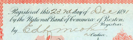 Dates can appear practically anywhere on the fronts of stock certificates, although they generally appear in the bottom right quadrant, usually in the last couple lines of text. The majority of certificates issued during the 20th century also show dates near left borders where clerks at companies tasked with registering certificates signed their names.