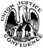 Central pine tree, cow, spear, and sheaves of wheat. The state motto, "Freedom and Unity" appears below.