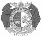 Shield with mountains and crossed pick and shovel. Sunrays originate from all-knowing "Eye of God" above fasces. State motto of Nil Sine Numine ("Nothing without Providence") on ribbon below shield.