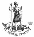 An amazon representation of Virtus holds a spear and stands above the vanquished form of Tyranny. Below are the words Sic semper tyrannis ("Thus ever to tyrants").