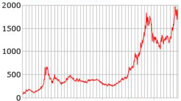 Let's say gold were currently valued at $1,800 per ounce on the world market, No one would ever expect the price to be $1,000 tomorrow. There are too many potential gold buyers willing to pay something close to $1,800.