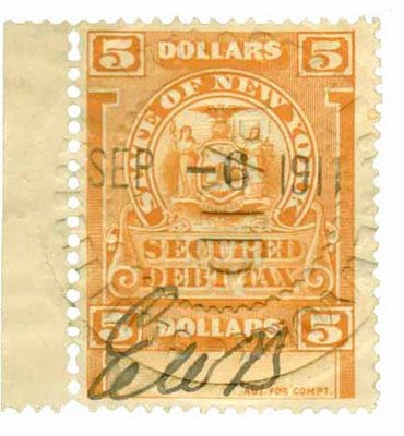 Michael Mahler, one of my contributors, just finished a HUGE 4-part article on revenue stamps applied to bonds held by New York residents. You may find his article at the American Revenue Association website.
