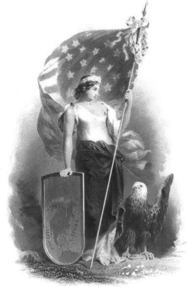 One of THE classic images of Standing Liberty, engraved by the American Bank Note Company. This vignette appears on rare (and under-priced) specimens of the Union Pacific Railway Co from the 1880s. (Image from 1976 ABNCo Annual Report.)