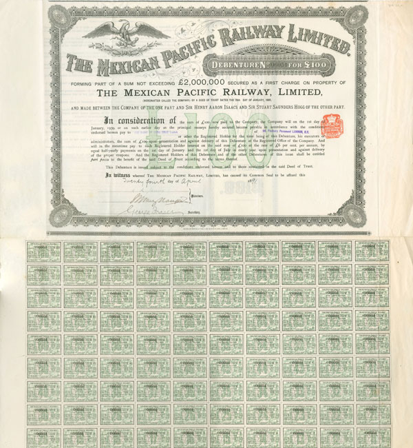 Mexican Railway Ltd bond stitched and reassembled from nine separate scans