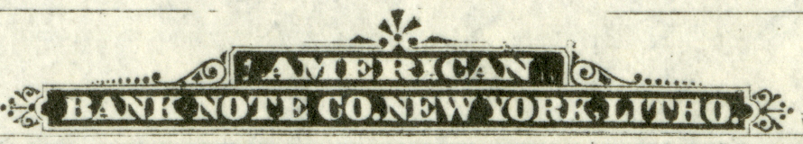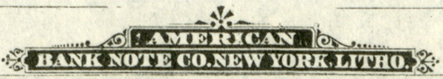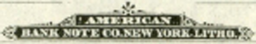 Here is the American Bank Note Company name as it appears on a few railroad stocks and bonds. This example comes the bottom of a stock certificate of the Rome City Street Railway Company as used from 1887 to about 1900. The real size on certificate is a bit less than 1.5 inches wide and slightly more than a quarter inch high. (3.77 x 0.68 cm.)